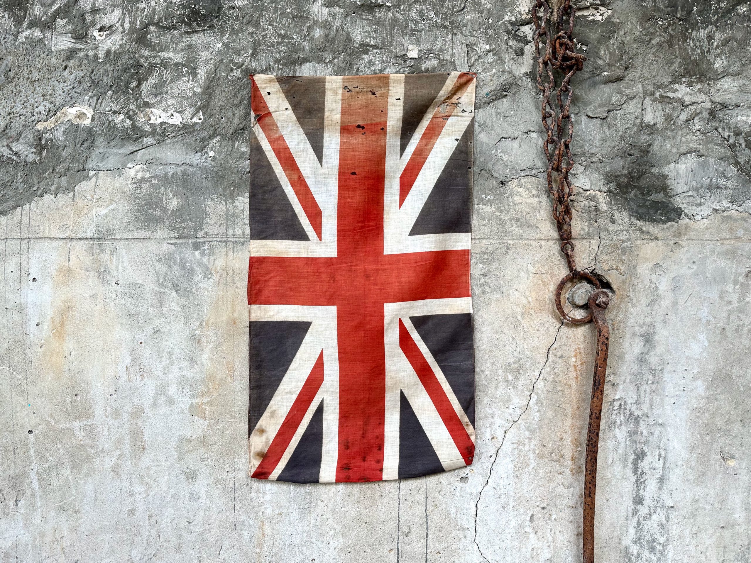 This vintage flag measures approximately 28″ x 16″. The flag shows some age related marks. holes and fading throughout (please see photos). Perfect for any collector or display.