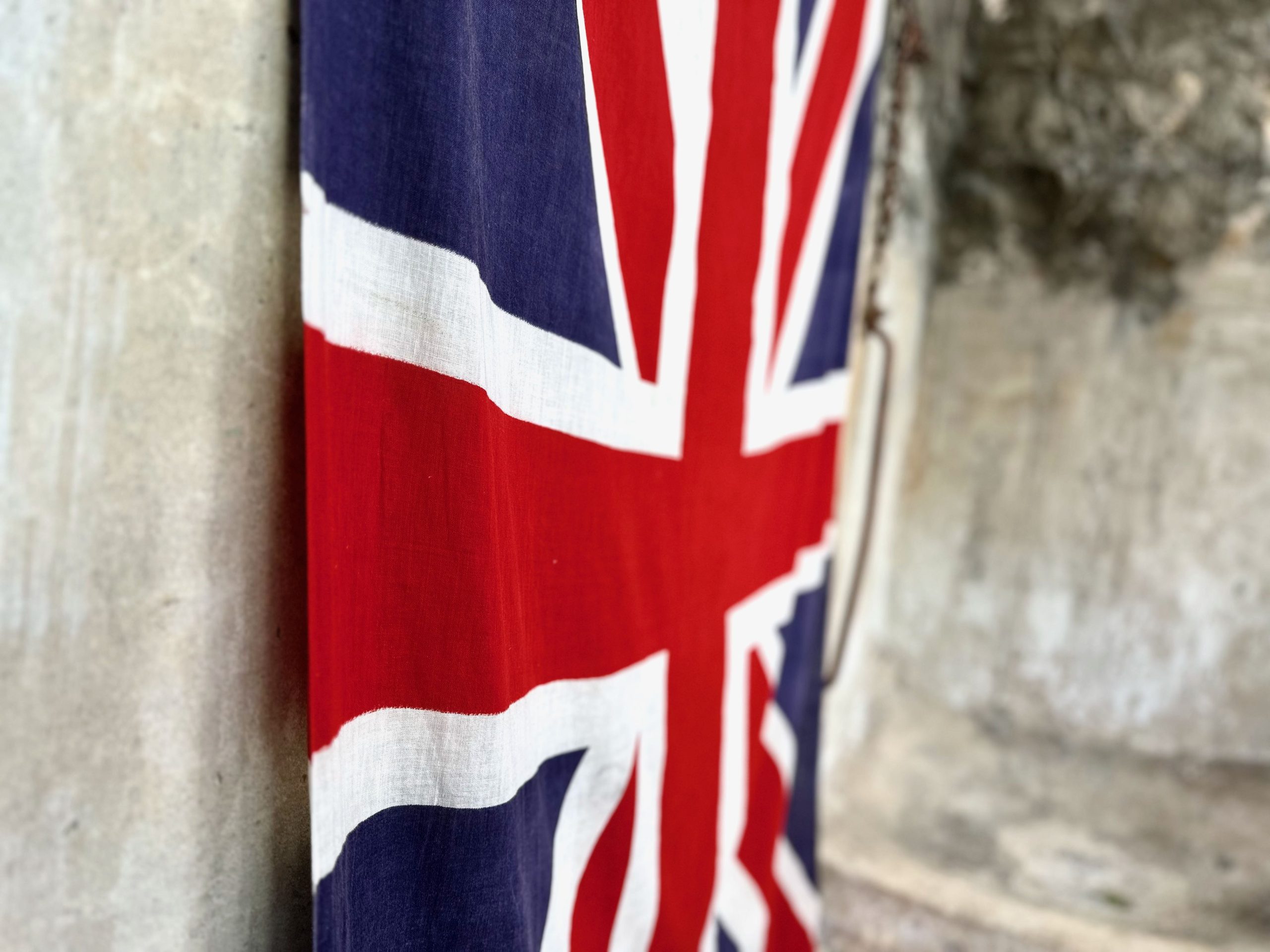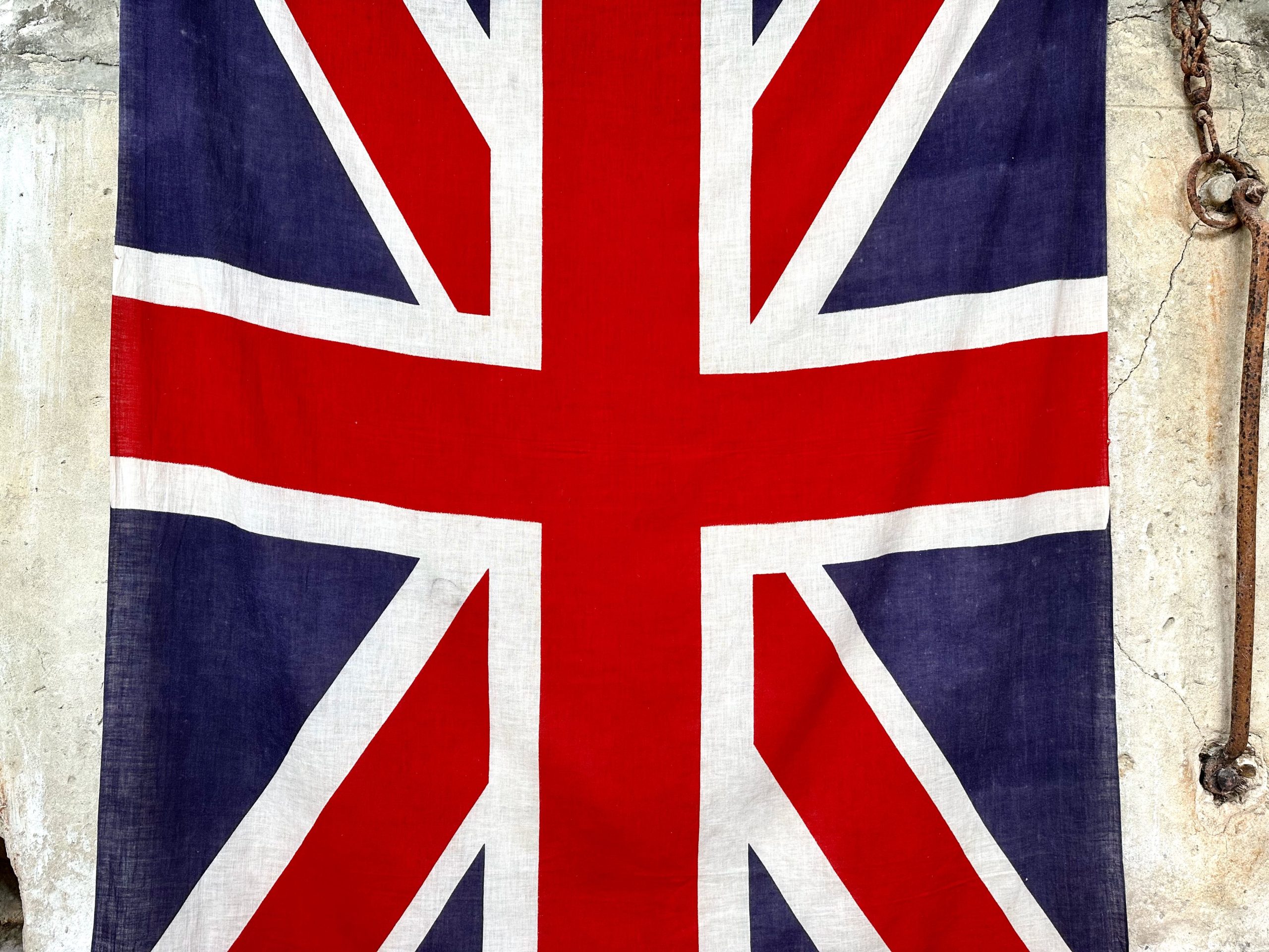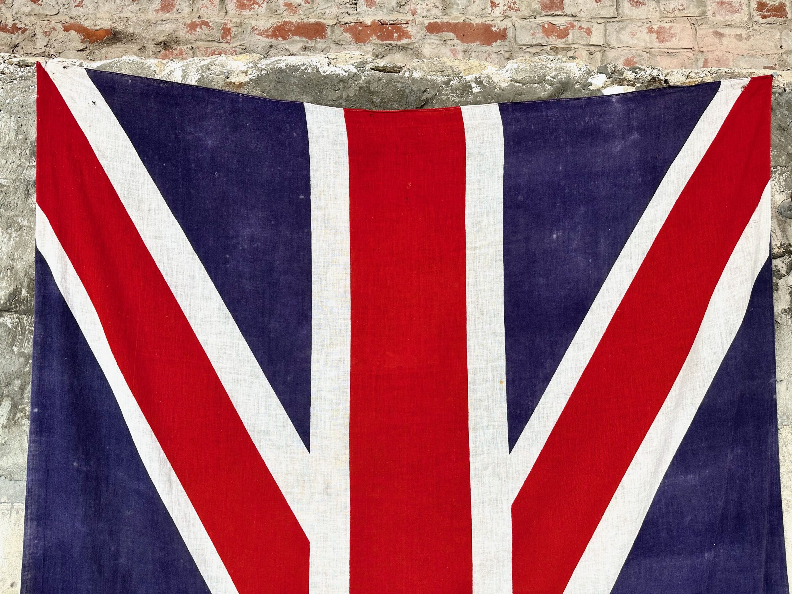 This vintage flag measures approximately 7′ x 49″. The flag shows some age related marks throughout (please see photos). Perfect for any collector or display.